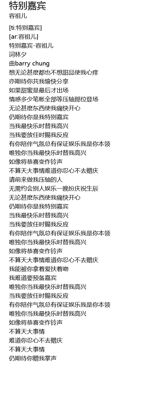 What day is it today? 而我只是嘉宾 ér wǒ zhī shì jiā bīn. See the latest chinese song lyrics only on . 嘉宾也许是另一种宿命 jiā bīn yě xǔ shì lìng yī zhǒng sù mìng I think of you once in a while.